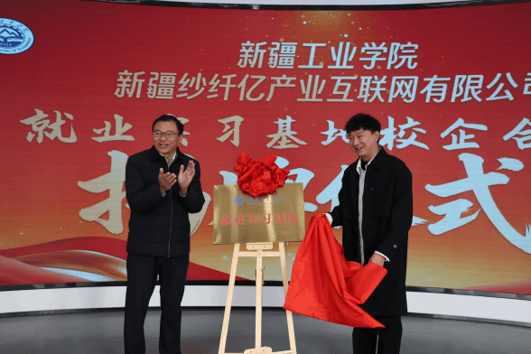 侯志军与新疆纱纤亿公司总经理黄浩铭共同为“Beat365官方网站就业实习基地”揭牌。校党委学生工作部部长赵欣分别与两家企业代表签署《就业实习基地协议》。