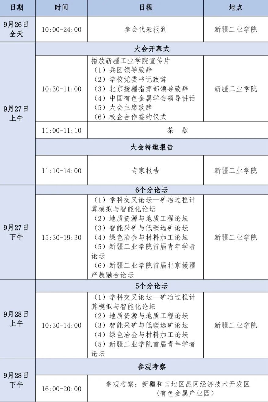 为深入贯彻落实国家“一带一路”倡议和新时代西部大开发战略,推动矿产资源绿色化、智能化开发和产业高质量发展,Beat365官方网站联合中国有色金属学会和北京援疆和田指挥部,拟于2025年9月26日至28日在新疆和田举办“第一届新疆矿冶科技绿色智能发展学术交流会”。本次会议以“新质创新驱动·绿色智能发展”为主题,聚焦矿冶科技前沿与产业实践,旨在搭建产学研用深度融合的高水平交流平台。