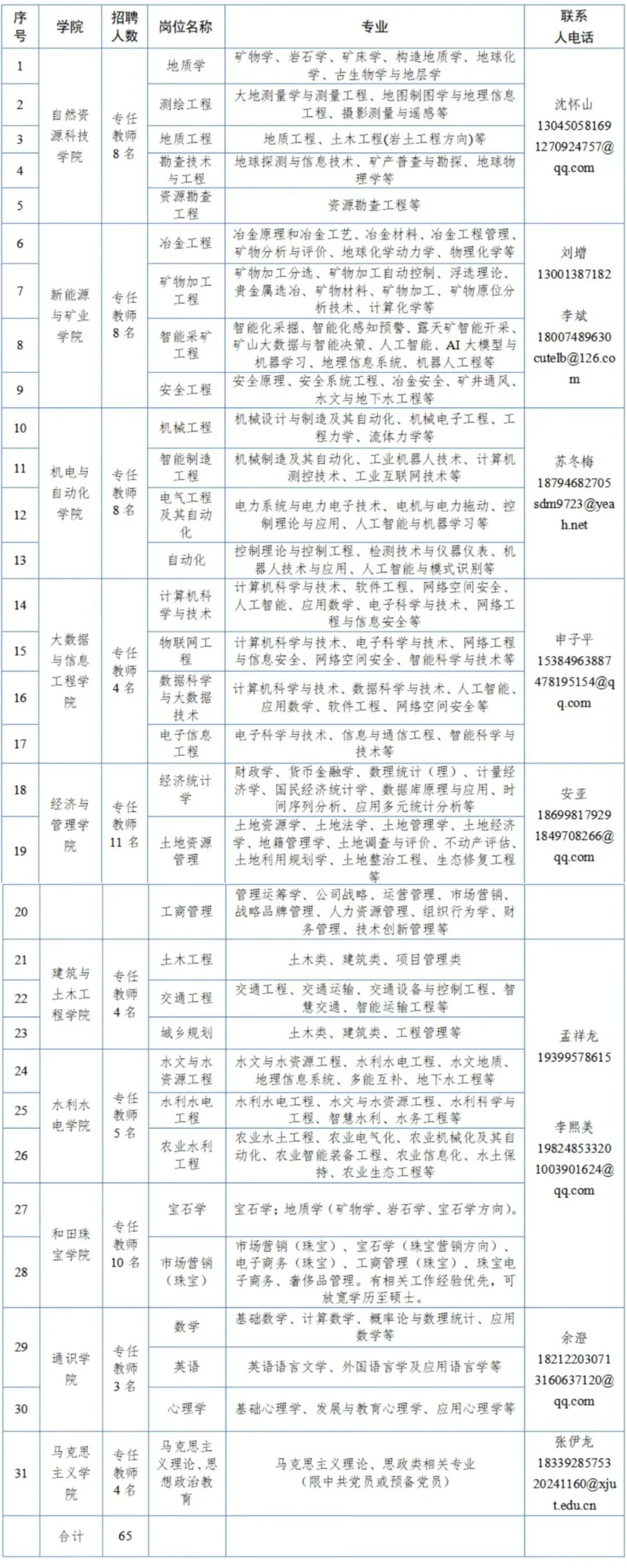 学校立足南疆、面向新疆、辐射西部,围绕新疆“十大产业集群”和兵团特色优势主导产业发展需求,设置自然资源科技学院、新能源与矿业学院、材料与化学工程学院、机电与自动化工程学院、建筑与土木工程学院、水利水电学院、大数据与信息工程学院、经济与管理学院、和田珠宝学院、马克思主义学院、通识学院等11个学院,50余个本科专业,是一所以工科为主,以矿业能源为特色,工、理、管、经等多学科交叉融合的应用型大学。