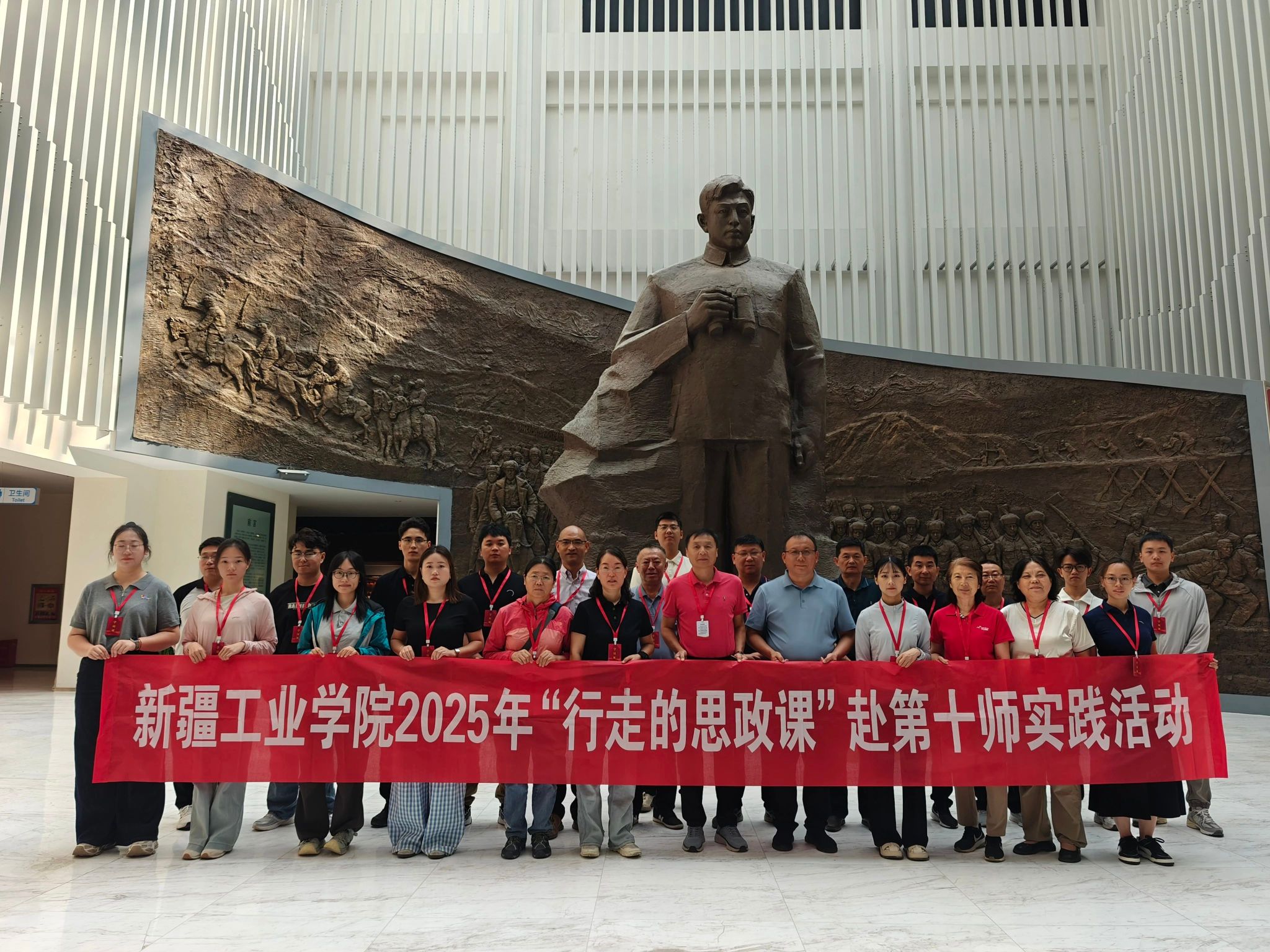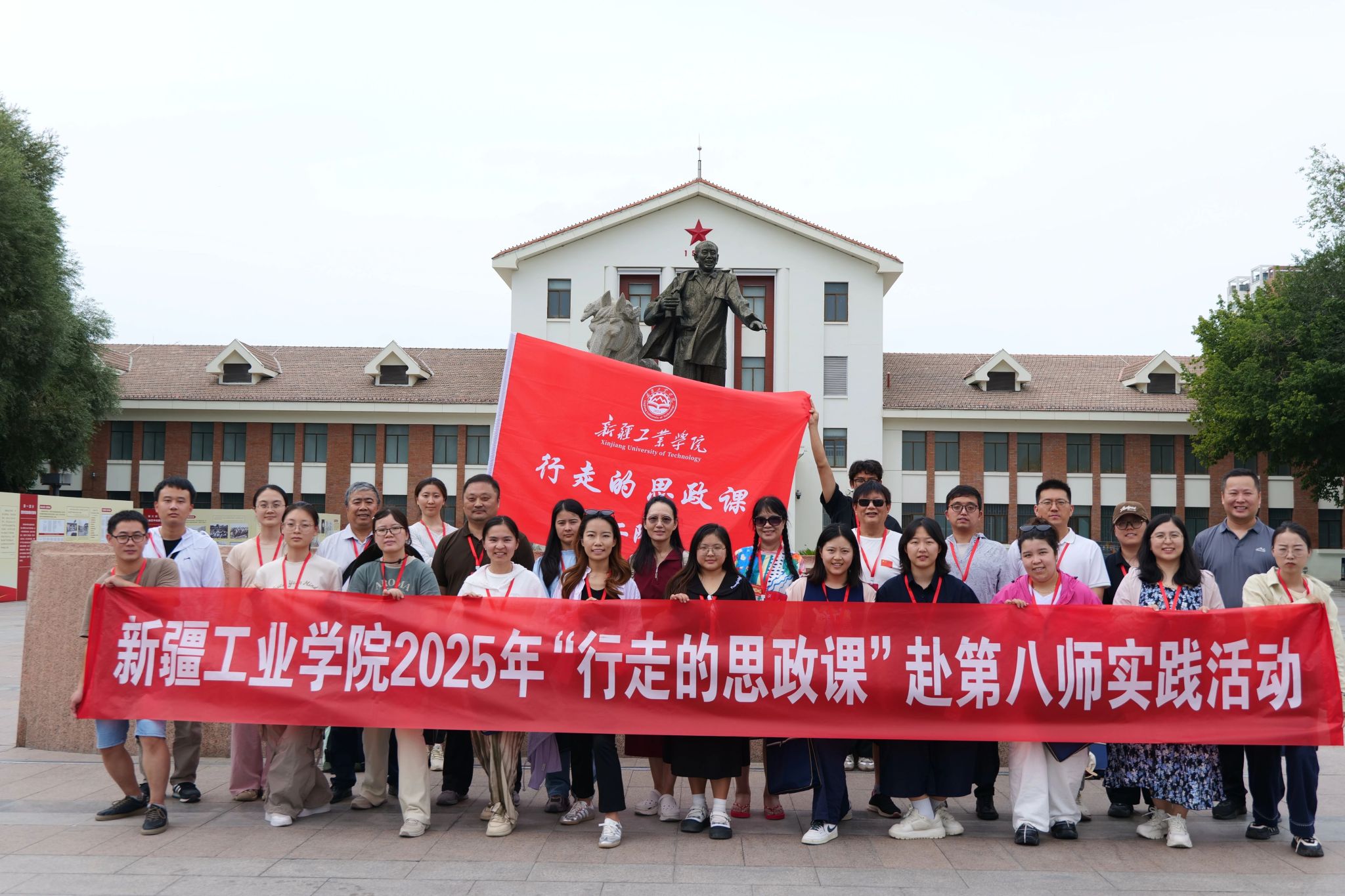 张小宾指出,本次“行走的思政课”红色实践活动,是学校党委落实立德树人根本任务、加强教师思想政治建设的重要举措。广大教职工要深入新疆及兵团大地进行实践体悟与精神洗礼,汲取奋进力量,将所见所闻、所思所悟内化于心、外化于行;要把兵团精神和胡杨精神、老兵精神融入血脉,转化为立足岗位、潜心育人、矢志奋斗的实际行动;要将“行走”的收获带回校园、带进课堂、带给学生,让红色基因、奋斗精神在青年学子心中生根发芽,让知疆、爱疆、兴疆、建疆的志向薪火相传。