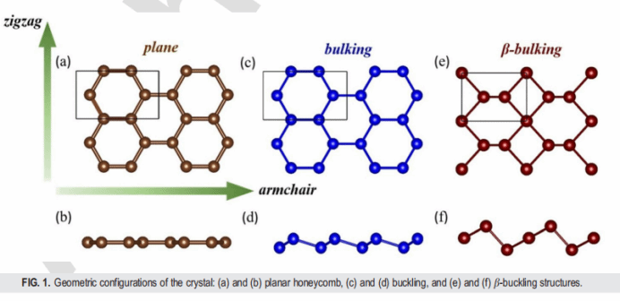 针对这一挑战,该团队创新性地提出 “β- 褶皱” 结构设计 —— 通过在类硅烯基底结构中横向引入原子亚层,构建出具有三个原子亚层的新型构型。基于第一性原理计算,团队发现采用这种 β- 褶皱结构的碲烯(β- 碲烯)不仅具备优异的弹性、热力学及动力学稳定性,更在应变调控下展现出惊人的力学性能:当沿锯齿方向施加 22% 的拉伸应变时,β-碲烯的负泊松比达到 - 1.67,这一数值不仅刷新了现有二维材料的最高纪录,更首次突破了经典弹性理论的下限。